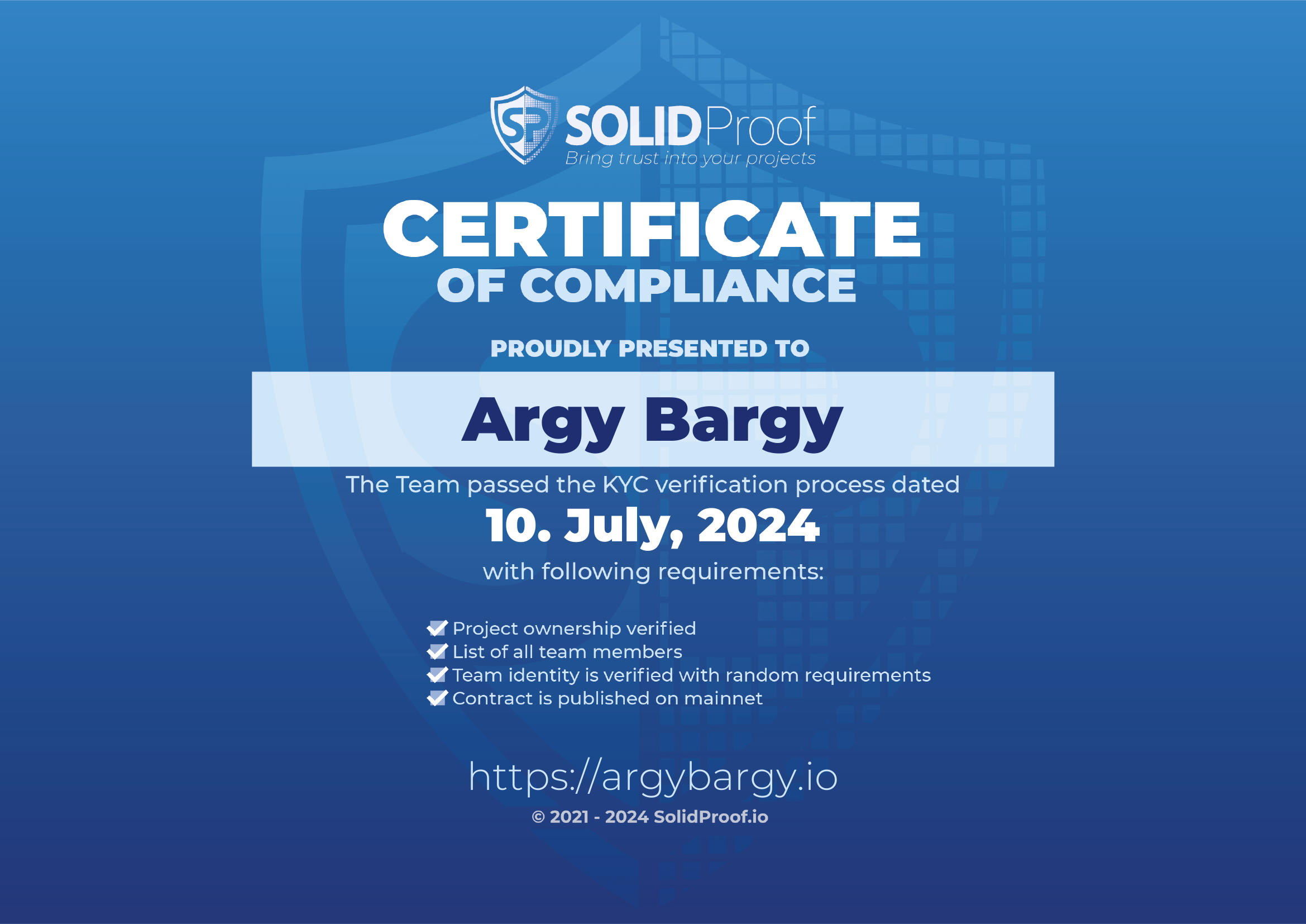 {% embed url="<https://github.com/solidproof/projects/blob/main/2024/ArgyBargyToken/KYC_Certificate_Argy_Bargy.png>" %}